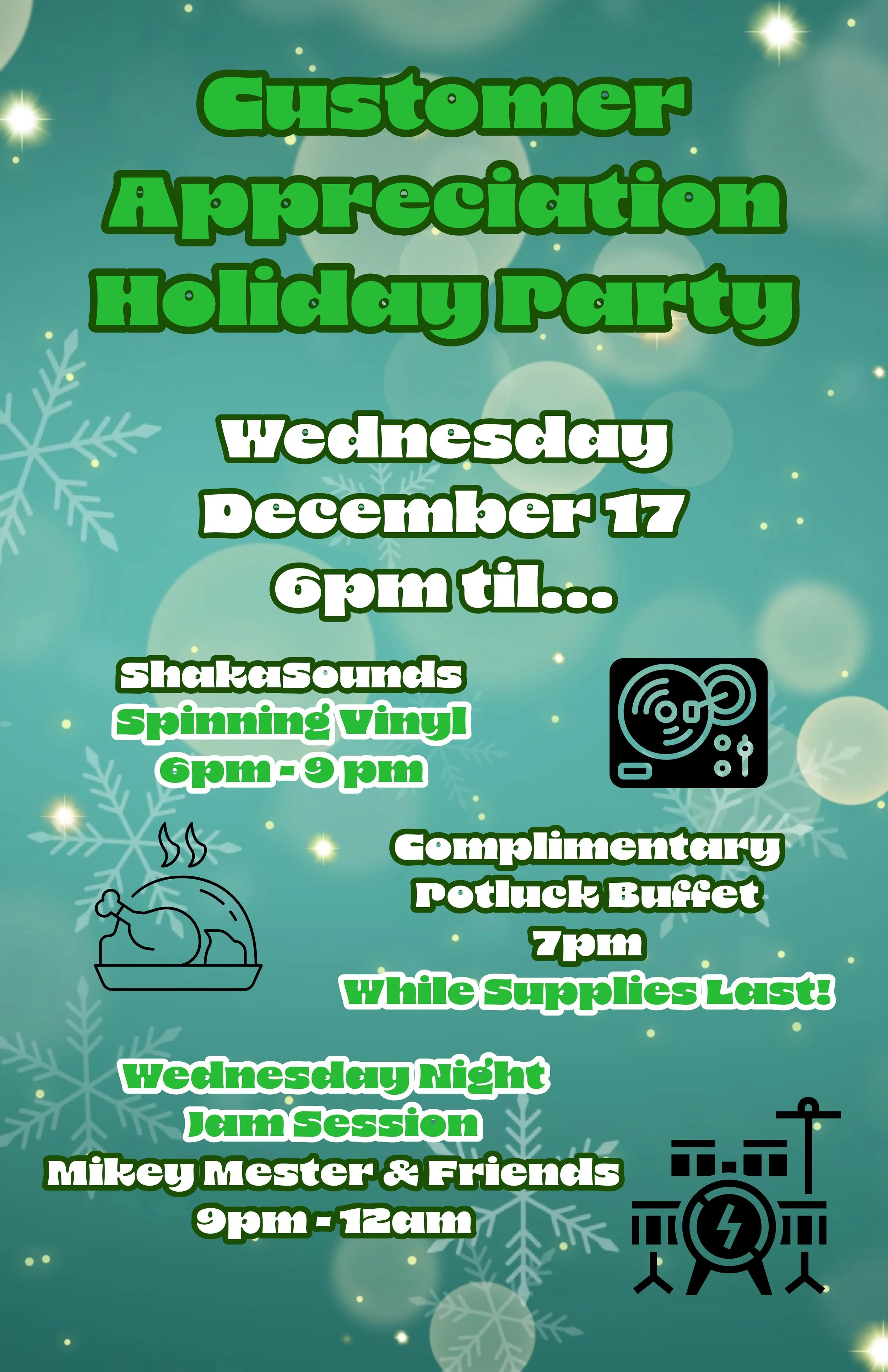 Every 3rd Monday of the Month you’ll hear the eclectic musical selection of ShakaSounds from 8 - 11 pm. Spinning vinyl from every time, place, and style, he’s sure to play something you enjoy. You can also hear him every 1st Saturday of the Month from 5 - 9 pm before The Three Notes.