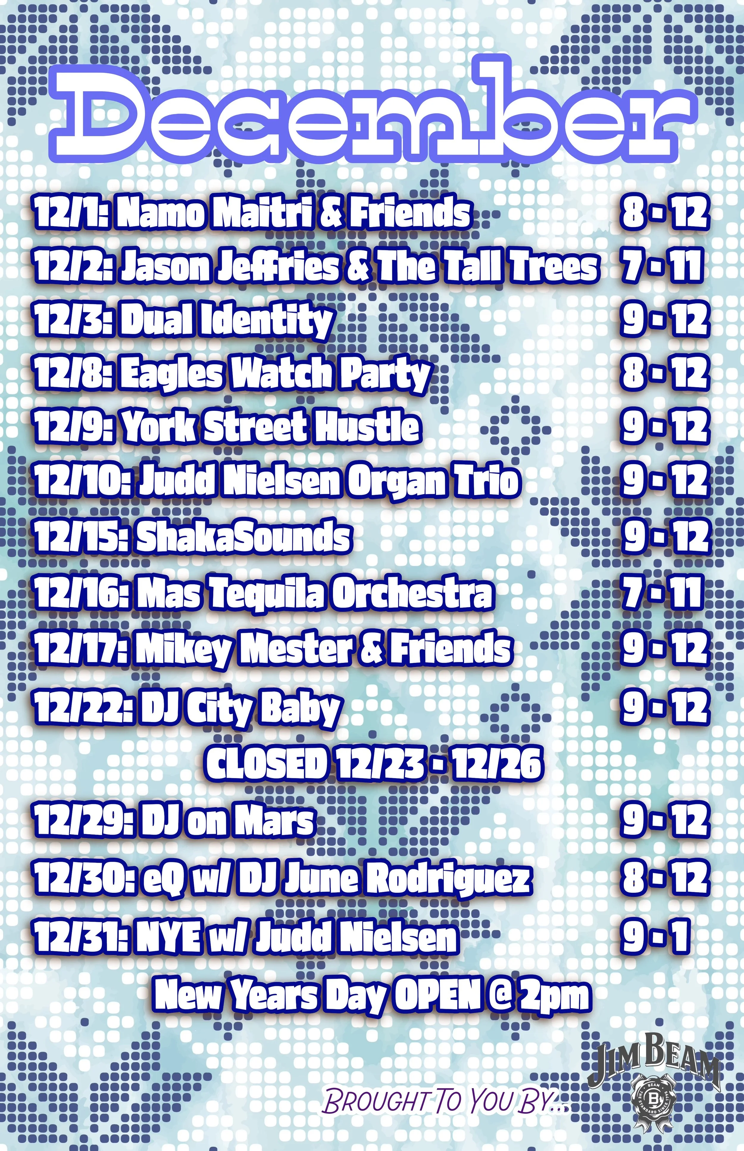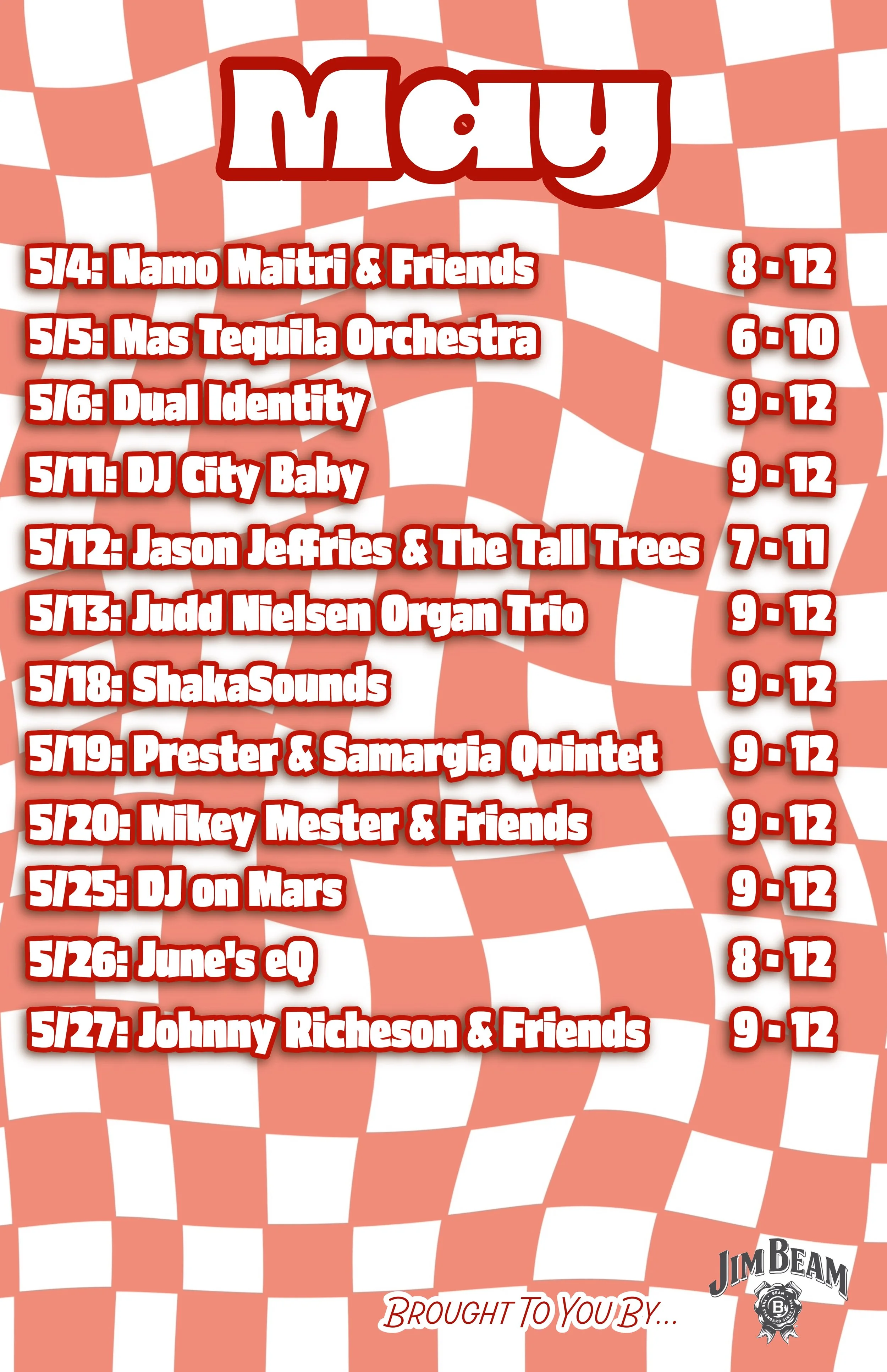 Neighborhood favorites, Jason Jeffries and The Tall Trees, will be playing here on the 1st TUESDAY of the Month. Guaranteed good time!
