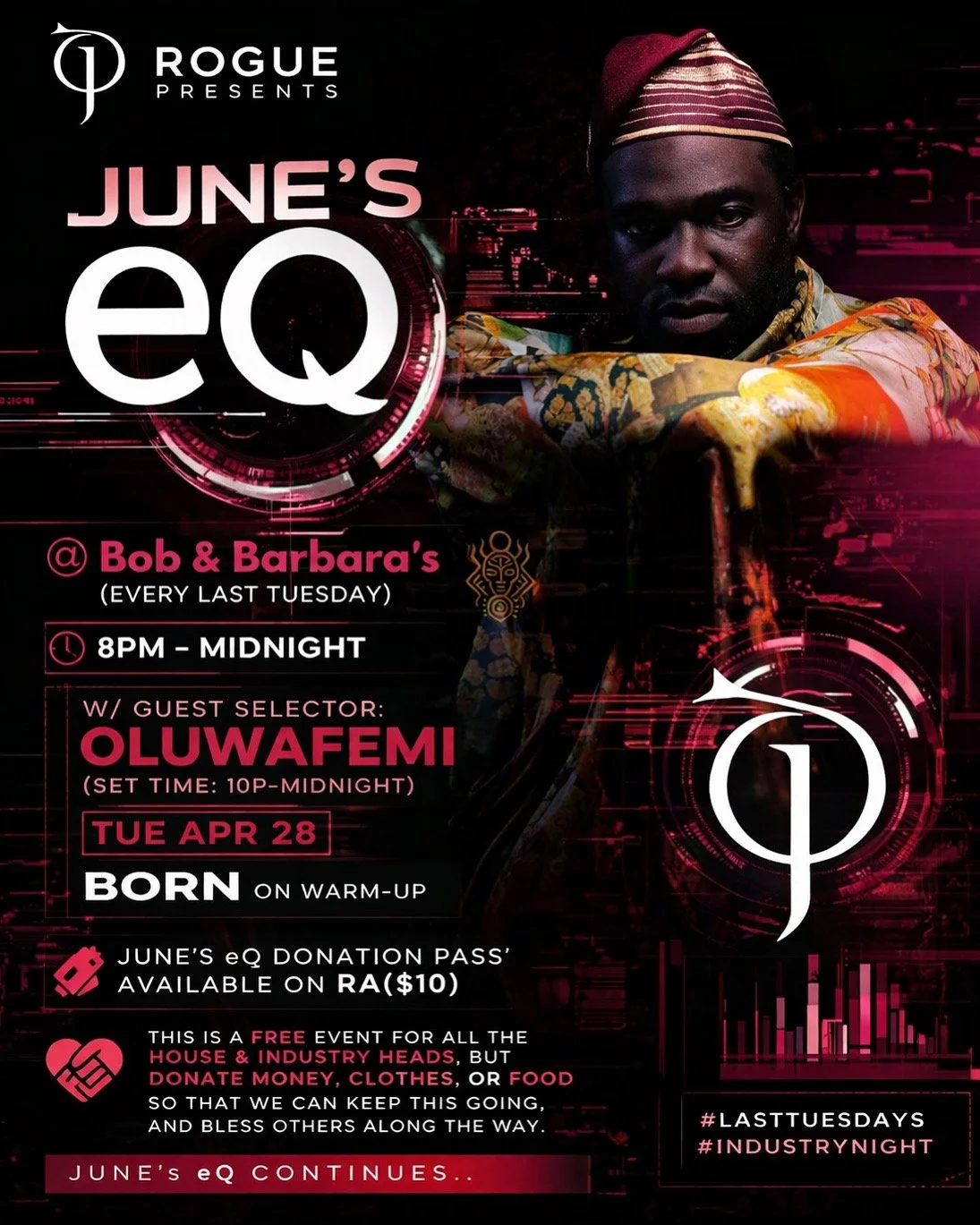 Low-key house music dance party on the LAST TUESDAY of every month. Each month features a different local DJ. Continued in the honor of the late, great DJ June Rodriguez.